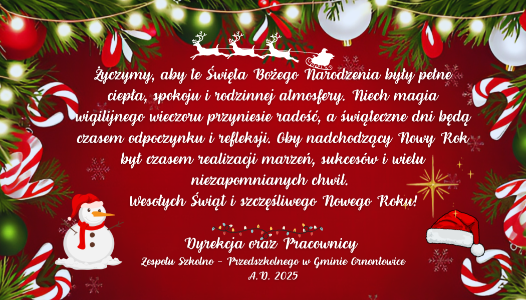 W naszym przedszkolu odbyły się wyjątkowe i pełne radości Wigilijki przedszkolne, które wprowadziły wszystkich w magiczny, bożonarodzeniowy nastrój. Dzieci, ubrane odświętnie i z uśmiechami na twarzach, zasiadły przy pięknie udekorowanych stołach, na których królowały świąteczne dekoracje oraz liczne słodkości. Pierniki i mandarynki ufundowane przez Radę Rodziców, a także ciasteczka, babeczki i inne smakołyki przyniesione przez dzieci, tworzyły prawdziwie świąteczny poczęstunek.