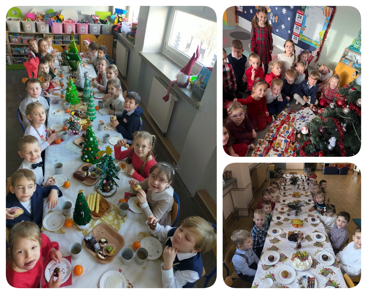 W naszym przedszkolu odbyły się wyjątkowe i pełne radości Wigilijki przedszkolne, które wprowadziły wszystkich w magiczny, bożonarodzeniowy nastrój. Dzieci, ubrane odświętnie i z uśmiechami na twarzach, zasiadły przy pięknie udekorowanych stołach, na których królowały świąteczne dekoracje oraz liczne słodkości. Pierniki i mandarynki ufundowane przez Radę Rodziców, a także ciasteczka, babeczki i inne smakołyki przyniesione przez dzieci, tworzyły prawdziwie świąteczny poczęstunek.