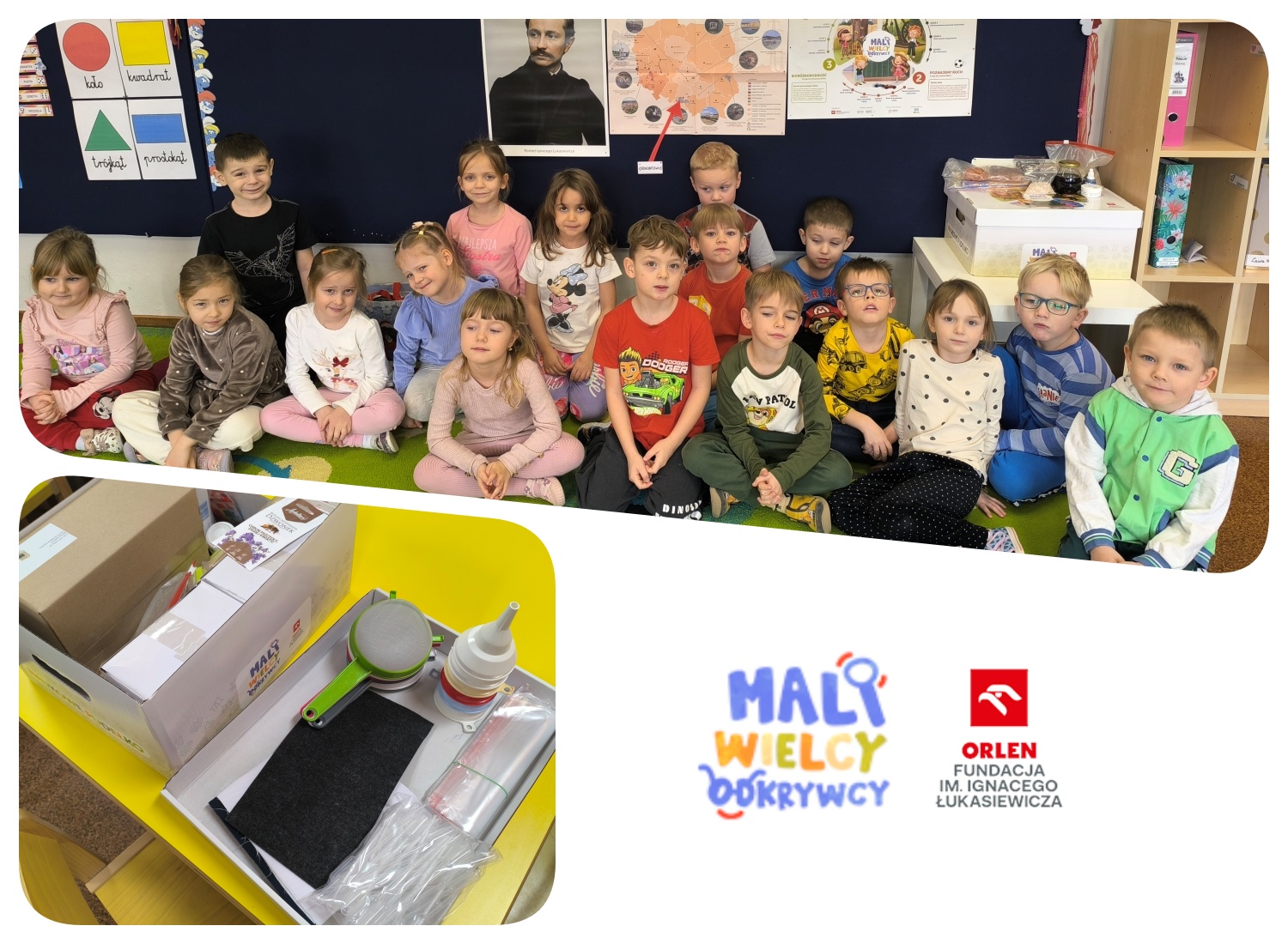 Dzieci z grupy „Smerfy” uczestniczą w Ogólnopolskim Programie Edukacyjnym: „Mali Wielcy Odkrywcy”, organizowanym przez Fundację ORLEN im. Ignacego Łukasiewicza. Głównym celem programu jest upowszechnianie wiedzy z zakresu nauk przyrodniczych poprzez zachęcanie dzieci do samodzielnego eksperymentowania i obserwowania zjawisk zachodzących w przyrodzie. Program ten został stworzony z myślą o najmłodszych, aby w atrakcyjny i przystępny sposób wprowadzać dzieci w świat nauki. Zajęcia realizowane są z wykorzystaniem metod aktywizujących, które motywują dzieci do działania, doświadczania i eksperymentowania. W ramach realizacji zadań grupa otrzymała bezpłatny Pakiet Naukowy, który stanowi istotne wsparcie dla nauczycieli. Zawiera m.in. starannie opracowane scenariusze zajęć oraz inne materiały dydaktyczne. Bogata i różnorodna zawartość materiałów umożliwia przeprowadzenie obserwacji, doświadczeń i eksperymentów dostosowanych do wieku dzieci.