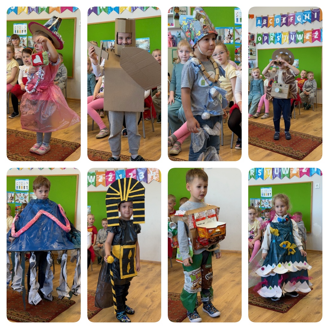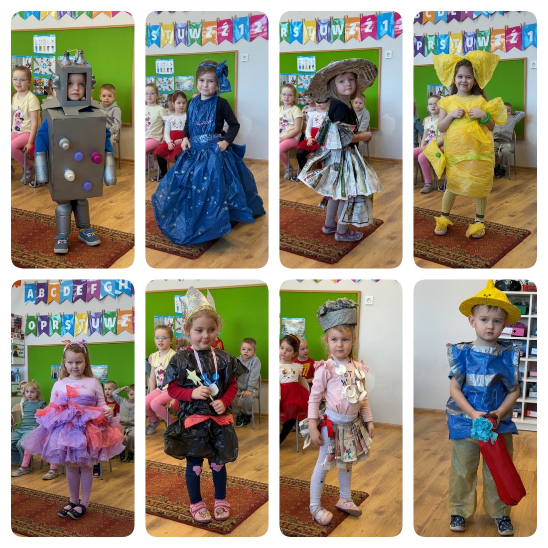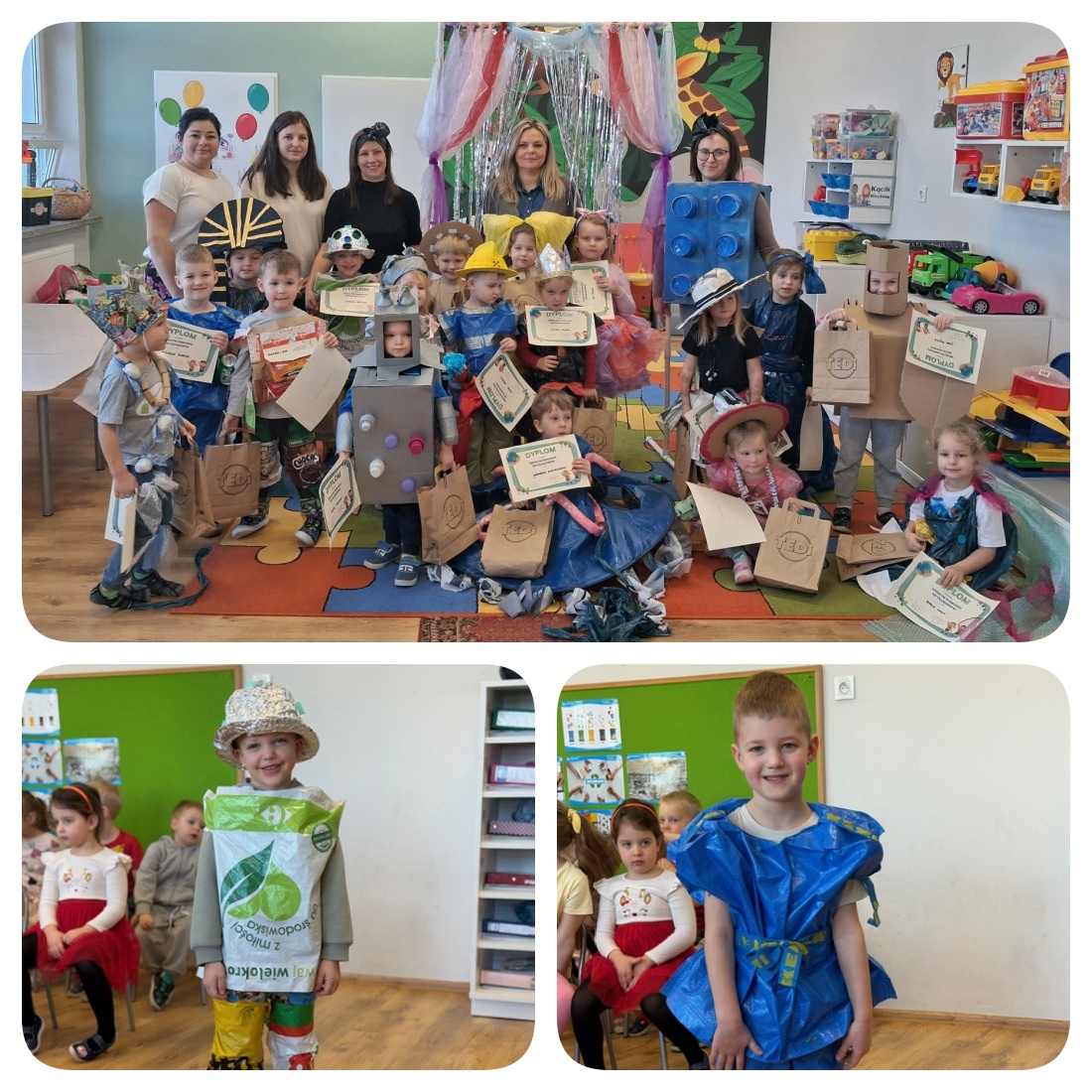 Finałowy pokaz mody recyklingowej odbył się 21.01.2026 r. w naszym Przedszkolu. Z okazji konkursu o tematyce recyklingowej, dzieci z grup Jeżyki i Tygryski wraz z rodzicami przygotowały stroje wykonane z materiałów wtórnych- papieru, plastiku czy folii. Konkurs miał na celu promowanie ekologii oraz twórczej pracy rodziców i dzieci. Pokaz mody, który odbył się w naszych grupach, pokazał, że z materiałów wtórnych można stworzyć prawdziwe cuda. Bardzo dziękujemy za udział wszystkim uczestnikom.