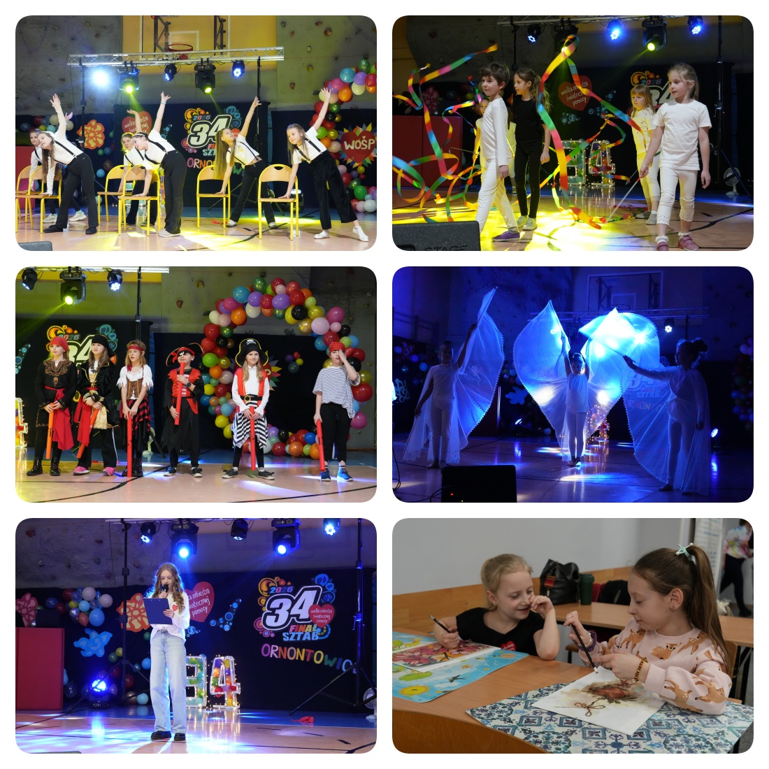 Na scenie odbyły się liczne występy uczniów naszego przedszkola i szkoły podstawowej. Nie zabrakło piosenek, tańców oraz pięknych aranżacji muzycznych przygotowanych przez naszych uczniów i przedszkolaków. Wystąpili również zaproszeni goście, w tym nasze absolwentki – wolontariuszki: Patrycja Garus, Klaudia Ulbrich oraz Julia Siedlaczek.