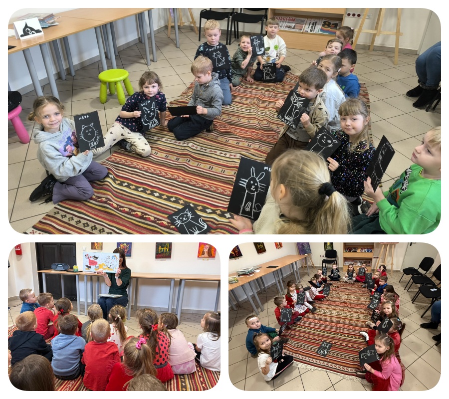 Podczas spotkania dzieci z ogromnym zainteresowaniem wysłuchały bajki „Kotek Splotek”, a następnie audiobooka „Tygrys”, który przeniósł nas w fascynujący świat dzikich kotów.