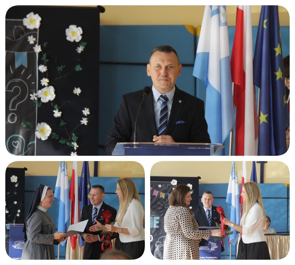 Następnie wystąpił Wójt Gminy Ornontowice – p. Marcin Kotyczka. W swoim przemówieniu przedstawił plany i inwestycje, które w najbliższym czasie będą realizowane z myślą o uczniach i mieszkańcach gminy. Pan Wójt złożył także gratulacje nauczycielom, którzy w minionym roku uzyskali kolejny stopień awansu zawodowego – nauczyciela dyplomowanego – pani psycholog Paulinie Polus – Drewniak oraz nauczycielce religii – Annie Plucie . Życzył wszystkim pomyślnego, pełnego sukcesów roku szkolnego.