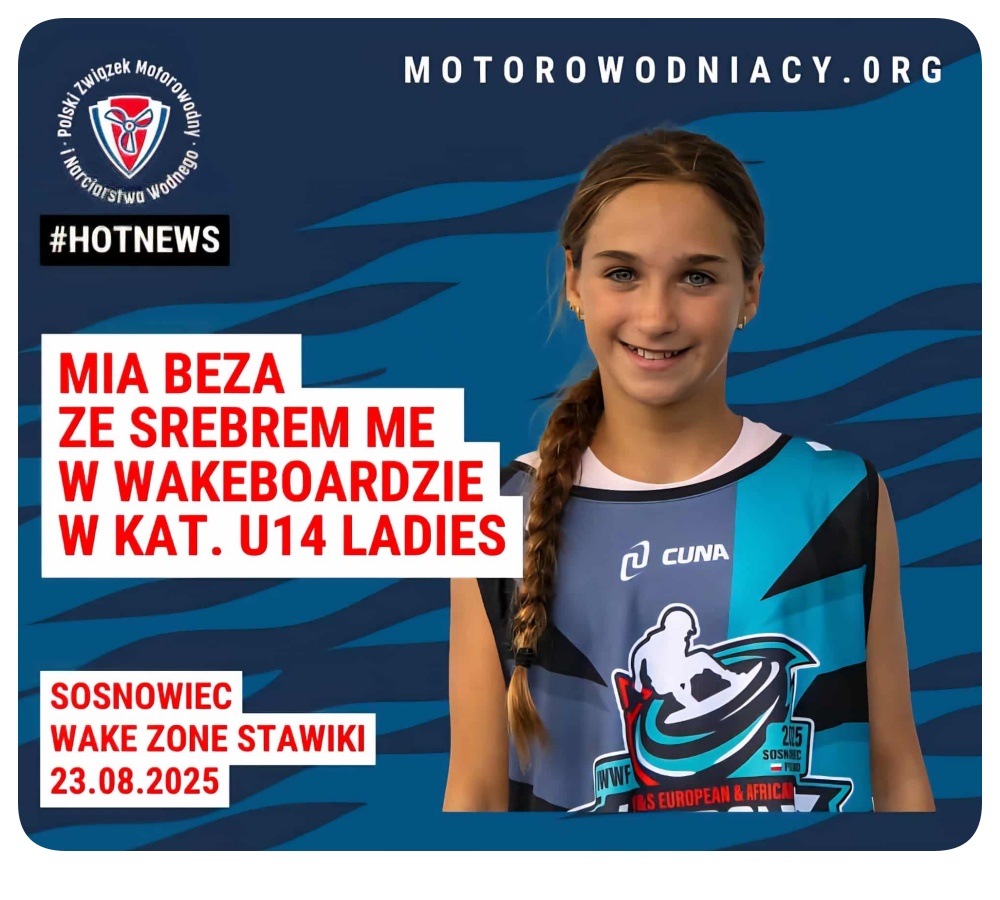 Mia Beza, młoda mieszkanka Ornontowic oraz uczennica naszej szkoły (klasa 5) odniosła wielki sukces na Mistrzostwach Europy i Afryki Wakeboard, które odbyły się w dniach 18-24 sierpnia 2025 r. Wydarzenie o międzynarodowej randze, gromadziło blisko 200 najlepszych zawodników i zawodniczek z 22 krajów Europy. W tak wymagającej rywalizacji, pełnej powietrznych akrobacji i trików na przeszkodach, Mia pokazała niezwykły talent i determinację zdobywając tytuł Vice Mistrzyni Europy w kategorii dziewcząt do lat 14.