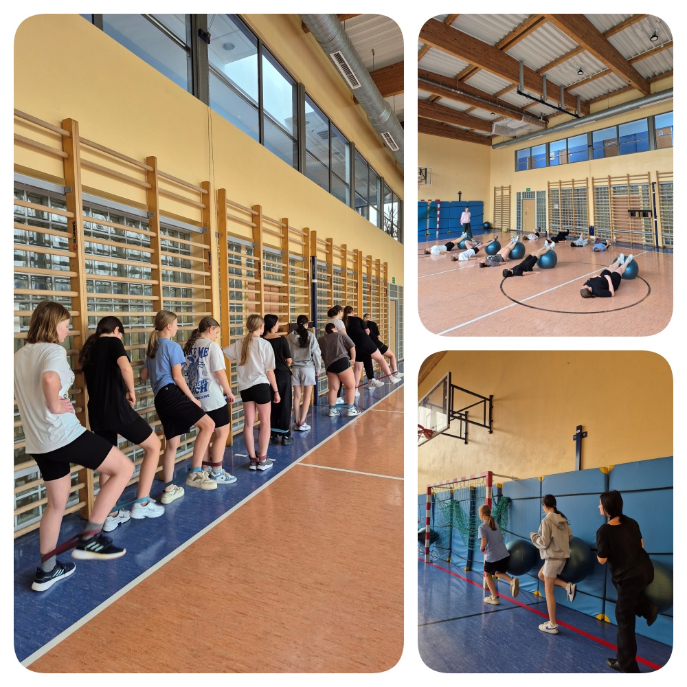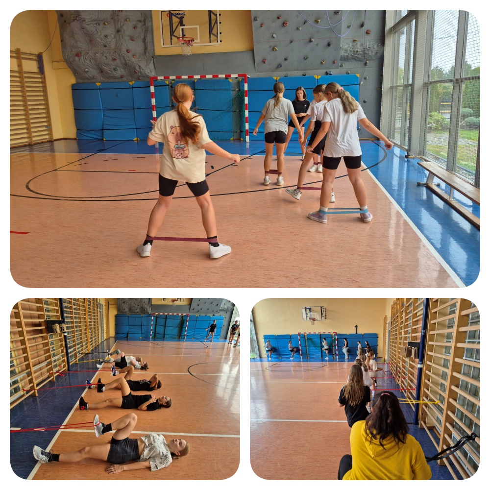 We wrześniu wykorzystywałyśmy mini bandy, gumy oporowe i piłki Pilates, dzięki którym każda uczennica mogła ćwiczyć efektywnie i bezpiecznie, dopasowując intensywność do swoich możliwości.
