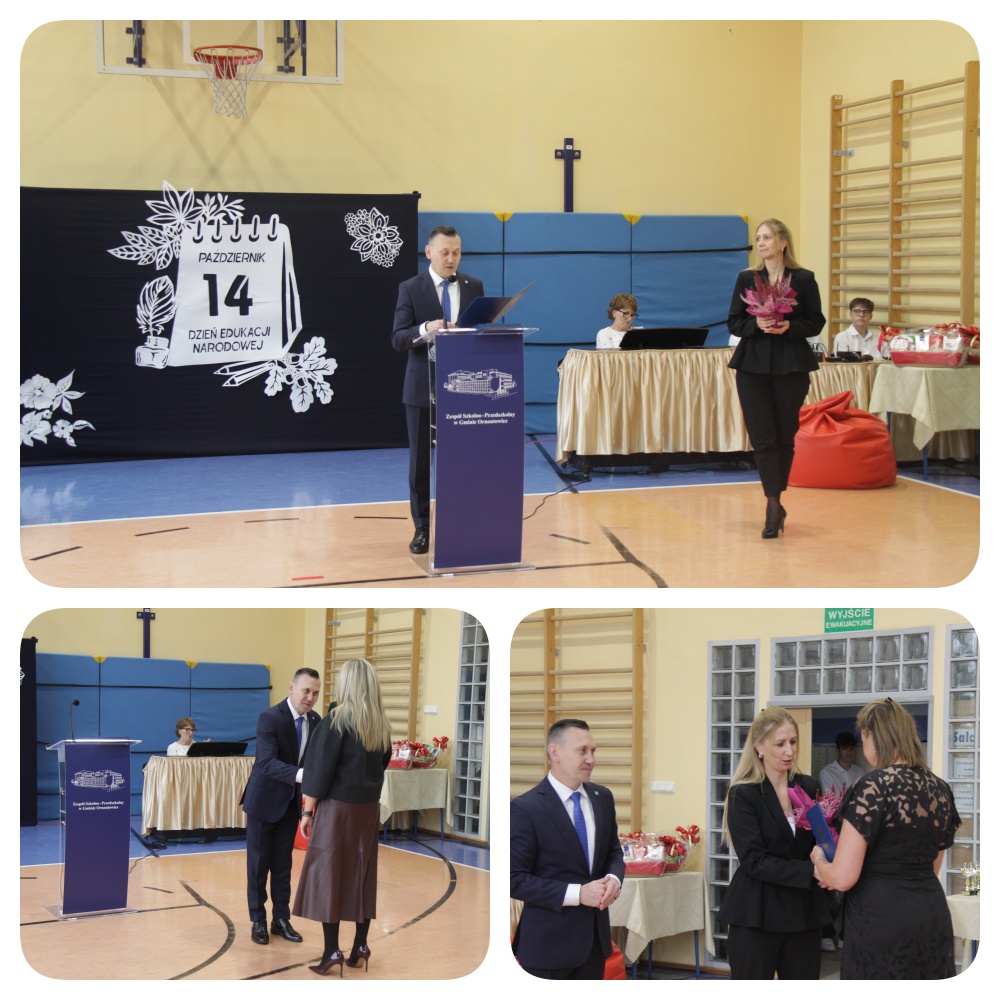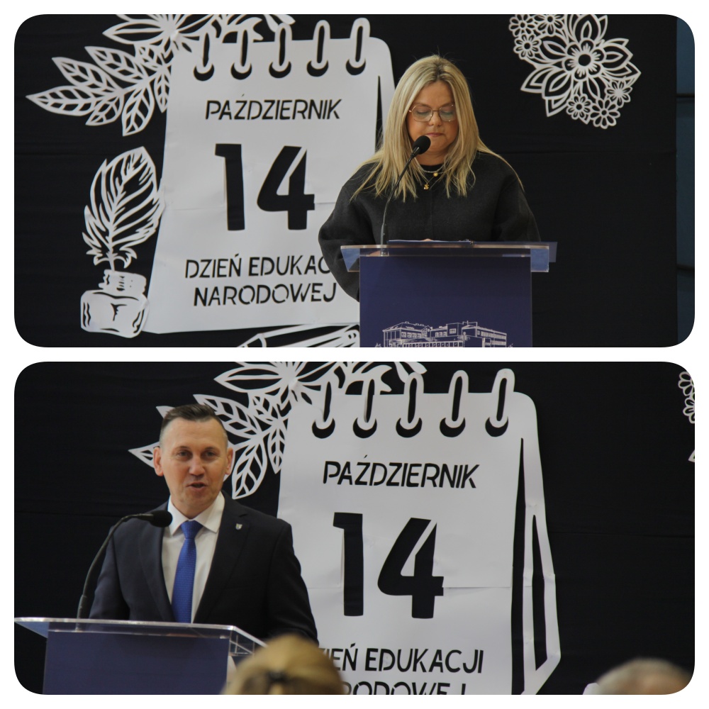 W pierwszej części uroczystości głos zabrała Dyrektor Zespołu Szkolno – Przedszkolnego Monika Orłowska - Przybyła, która podkreśliła w swoim przemówieniu, że „nauczyciel to jedna z najbardziej wyjątkowych postaci na całym świecie, bo któż inny mógłby każdego dnia ofiarować to, co w nim najlepsze, cudzym dzieciom”, podkreśliła również, że przed współczesnym nauczycielem stoją nowe wyzwania, nie zawsze łatwe i oczywiste, które narzuca dzisiejszy świat.