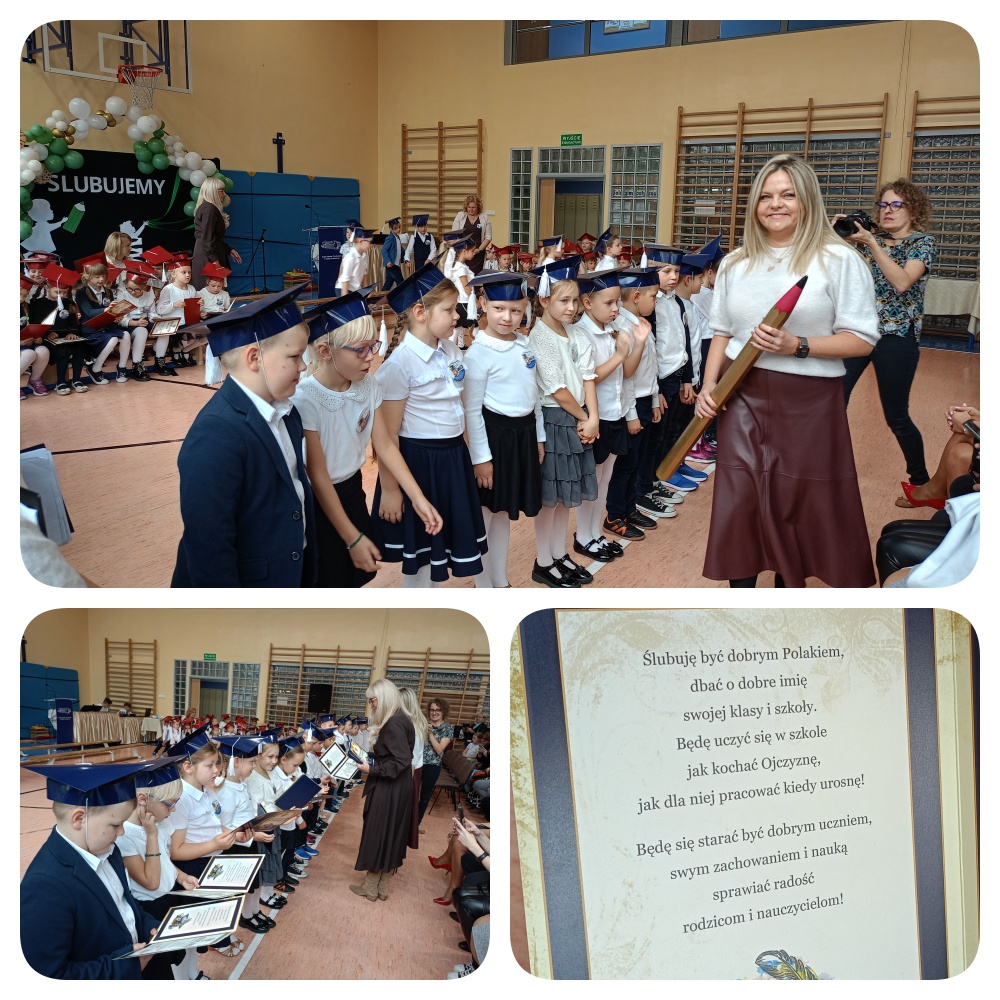 Nasi najmłodsi uczniowie zaprezentowali piękne występy artystyczne, pełne radości, piosenek i wierszy. Następnie z powagą i uśmiechem na twarzy złożyli uroczyste ślubowanie, stając się prawdziwymi uczniami naszej szkoły.