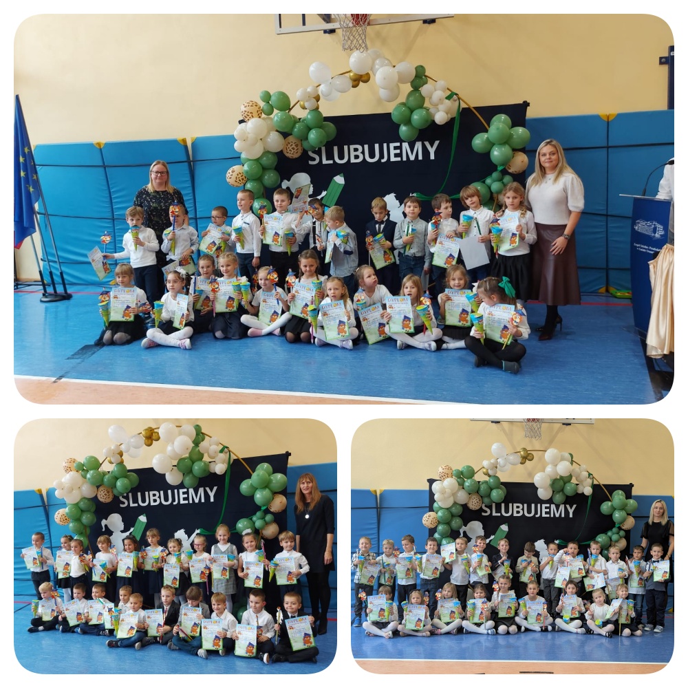 Zwieńczeniem uroczystości było uroczyste ślubowanie oraz akt pasowania na starszaka, który dostarczył wszystkim wielu wzruszeń i radości. Na pamiątkę tego wyjątkowego dnia każdy przedszkolak otrzymał rożek obfitości oraz duży ołówek – symbol gotowości do nowych wyzwań i nauki.