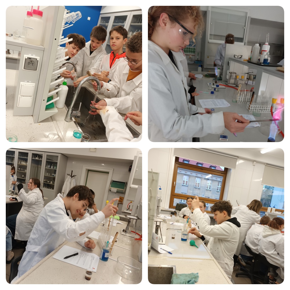 Dzięki wizycie w laboratorium uczniowie mieli możliwość nauczenia się prawidłowego wykonywania prostych czynności laboratoryjnych, poznali sprzęt i odczynniki chemiczne.