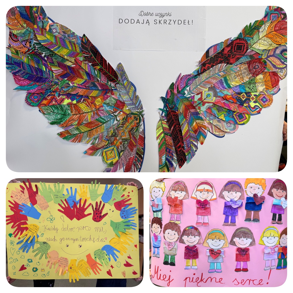 W listopadzie uczniowie klas 1–3 wraz z wychowawcami przygotowali kolorowe, pomysłowe i pełne serca Plakaty Dobroci. Na korytarzu pojawiły się Drzewa Dobroci, Skrzydła pełne ciepłych gestów, Rzeki dobrych uczynków i wiele kreatywnych pomysłów, które aż proszą, by zatrzymać się na chwilę i uśmiechnąć.