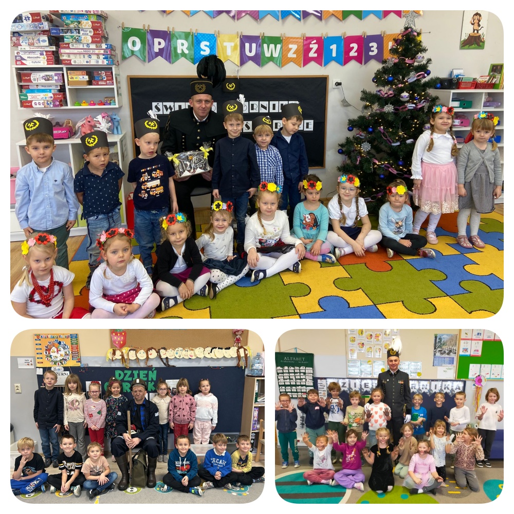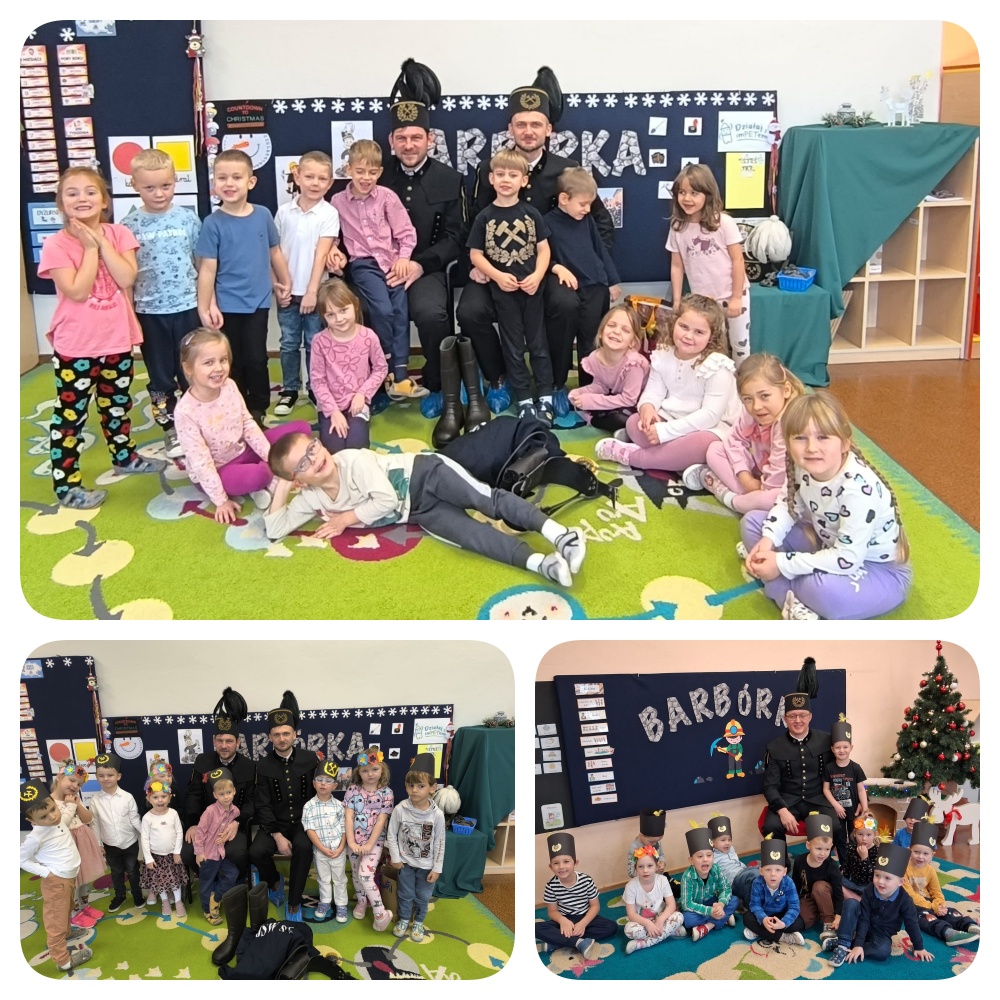 Barbórka to dla nas, mieszkańców Śląska wyjątkowe święto i bardzo cieszymy się, że w tak szczególnym dniu dzieci z naszego przedszkole mogły gościć tylu górników. Górnicy w galowych mundurach oraz roboczych strojach opowiadali przedszkolakom o trudach swojej pracy, pokazywali sprzęt jaki towarzysz im na co dzień. Były śląskie bajki oraz zagadki na które dzieci chętnie odpowiadały. Nie zabrakło słodkiego poczęstunku dla każdego przedszkolaka. Bardzo dziękujemy wszystkim Górnikom, którzy znaleźli czas aby nas dowiedzieć w tym szczególnym dla nich dniu. Życzymy wszystkiego najlepszego!