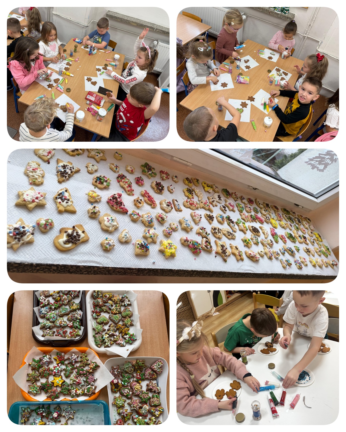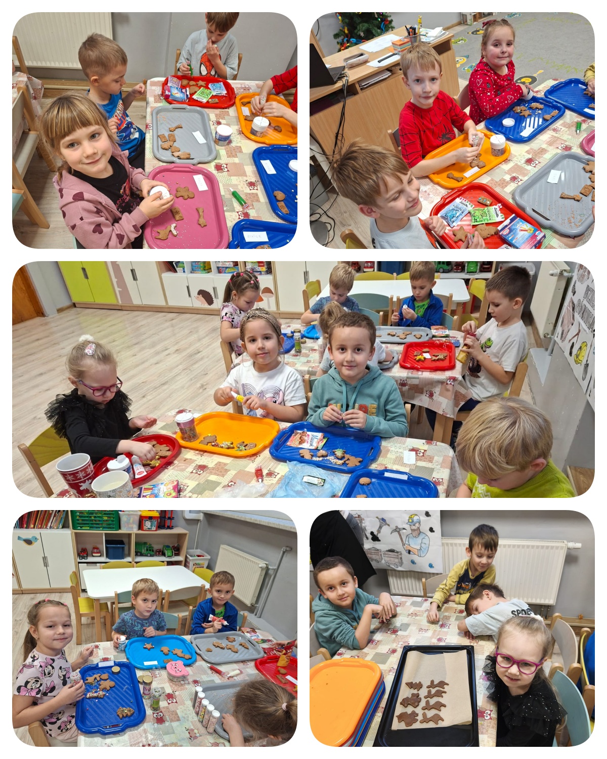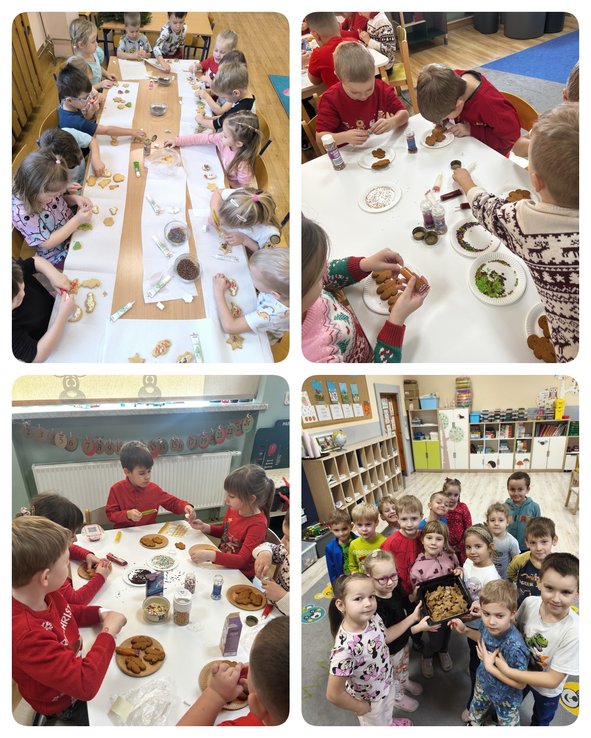 W naszym przedszkolu odbyło się radosne zdobienie pierników, które wprowadziło dzieci w świąteczny nastrój. Przedszkolaki z wielkim zaangażowaniem dekorowały pierniki kolorowym lukrem oraz różnorodnymi posypkami, rozwijając przy tym swoją kreatywność i zdolności manualne. Każdy piernik był wyjątkowy, a wspólna zabawa sprawiła dzieciom wiele radości i uśmiechu.