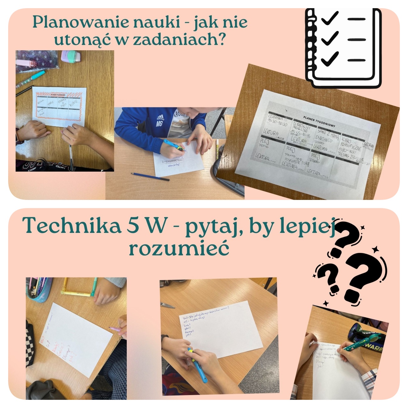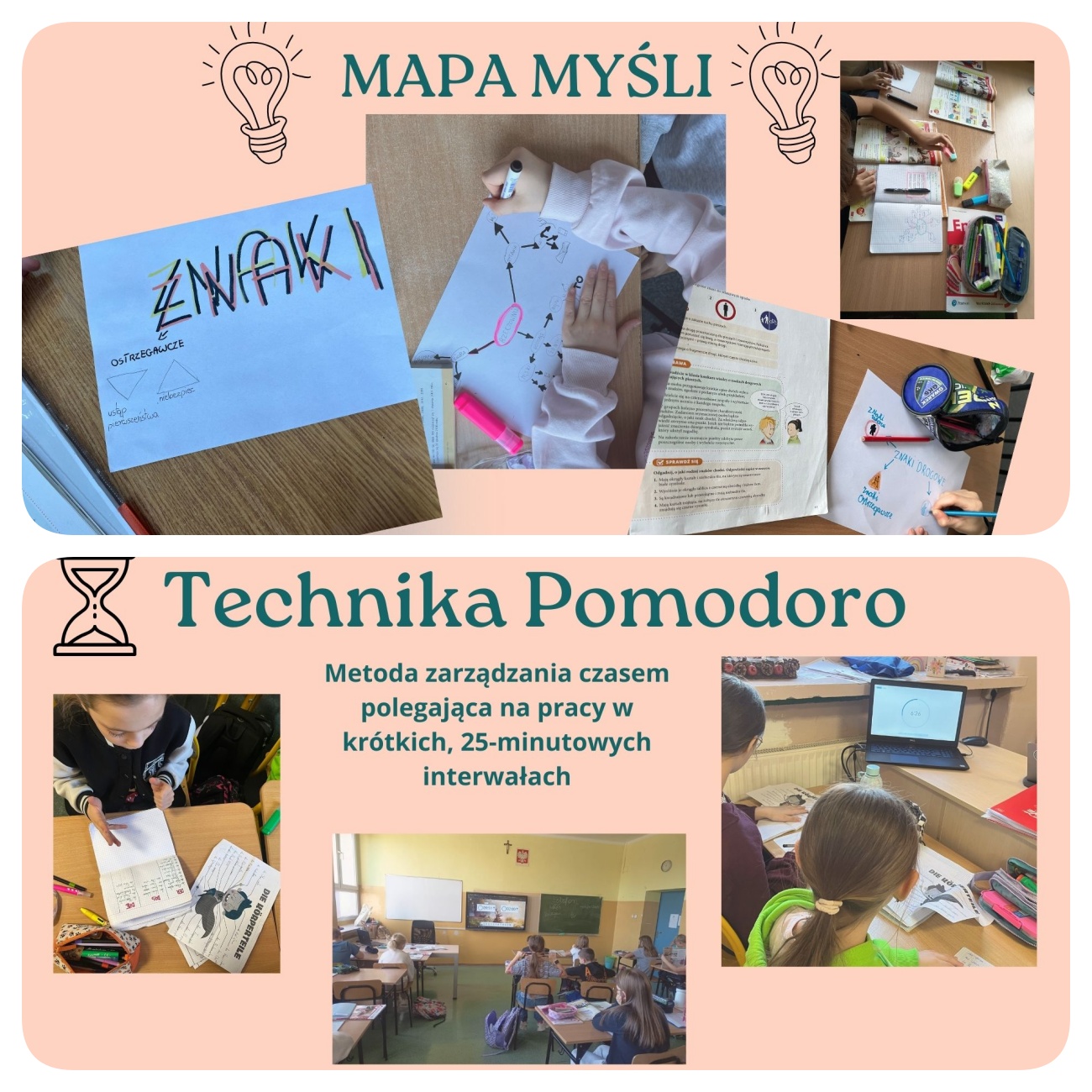 W pierwszym okresie roku szkolnego 2025/2026 uczniowie klas 4d i 4c uczestniczyli w projekcie edukacyjnym „Uczę się uczyć się”. Celem projektu było rozwijanie umiejętności skutecznego uczenia się, planowania pracy oraz organizacji czasu. Podczas zajęć uczniowie poznawali różne techniki zapamiętywania, sposoby koncentracji oraz metody pracy z tekstem. Wśród metod, które poznali uczniowie były między innymi: tworzenie fiszek, lapbooków, technika Pomodoro, notatki metodą Cornella, mapy myśli, skojarzenia i mnemotechniki, zabawa w nauczyciela czy technika 5W+H.