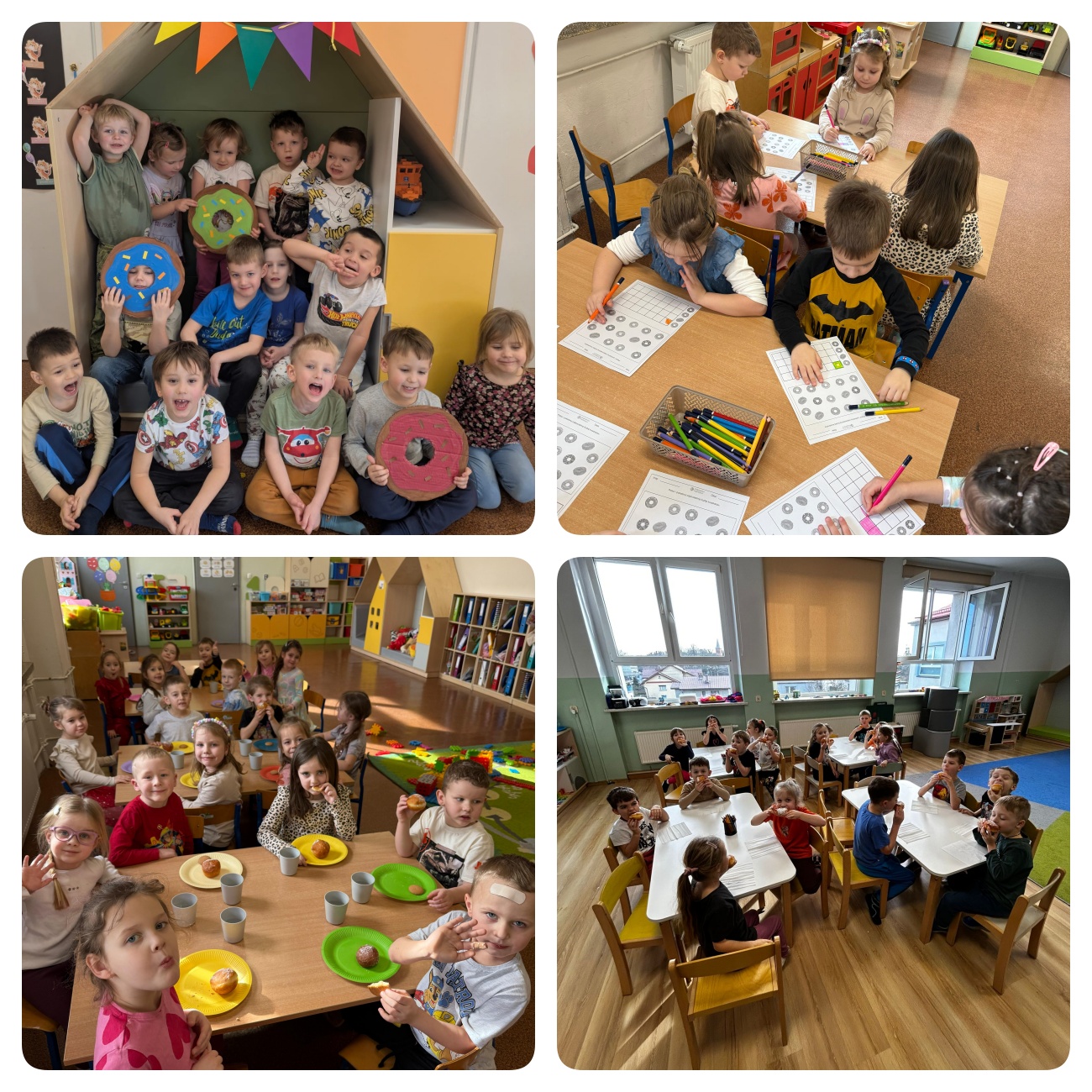 Dziś w naszym przedszkolu świętowaliśmy Tłusty Czwartek. Z tej okazji każdy przedszkolak mógł skosztować pysznego pączka. Radosna atmosfera i uśmiechy dzieci były najlepszym dowodem na to, jak bardzo smakowały słodkie przysmaki.